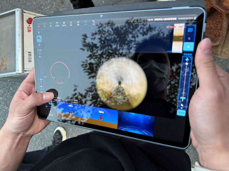 戶(hù)外實(shí)操環(huán)節中,華中科技大學(xué)技術(shù)團隊使用升級改進(jìn)后的檢測設備,該設備是在傳統 CCTV 檢測機器人和聲吶檢測設備的基礎上搭載激光雷達技術(shù)。機器人在管道行進(jìn)中使用高清攝像頭不斷拍攝管道內部影像,清晰捕捉管道內壁的裂縫、腐蝕等細節,同時(shí),激光雷達發(fā)射激光束,快速掃描管道周邊空間,精準測量管道的管徑、管壁厚度等數據,聲吶檢測設備通過(guò)發(fā)射和接收聲波,探測管道管徑、淤積厚度等數據。將兩種設備采集到的數據,通過(guò)無(wú)線(xiàn)傳輸技術(shù)實(shí)時(shí)傳輸到平板電腦之后,再利用自主研發(fā)的軟件對各類(lèi)數據進(jìn)行融合處理,構建出排水管道的三維模型。
